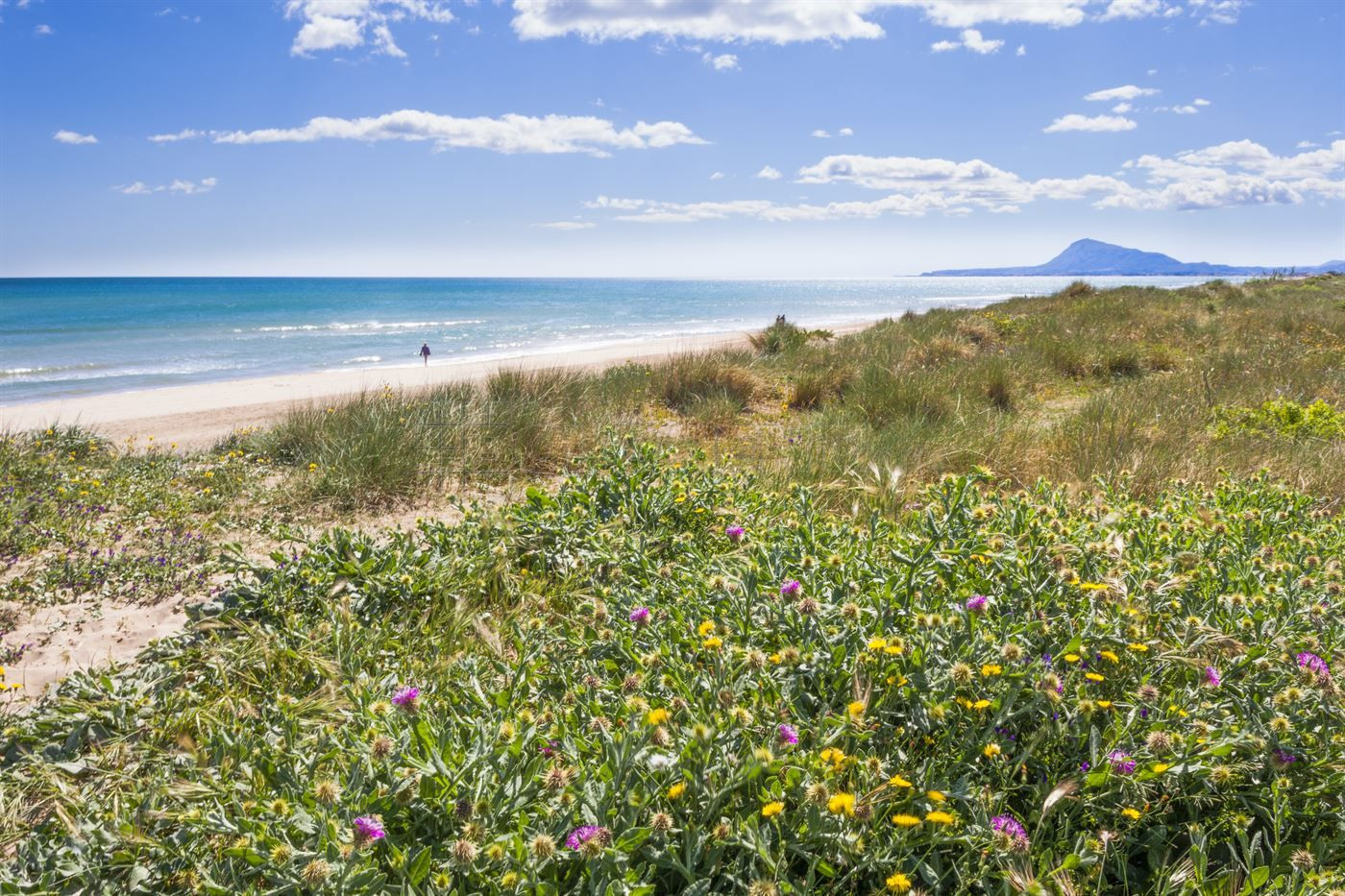 Der Strand Aigua Blanca besticht durch kilometerlangen, feinen, goldenen Sand. Ausgezeichnet mit der Blauen Flagge der Europäischen Union, ist er ideal für Dünenliebhaber, Wassersportbegeisterte und Familien. Entlang der Promenade finden Sie Kioske und Strandbars wie Malamar und Kuk Vermell sowie Restaurants wie La Nansa, La Sota und La Duna.