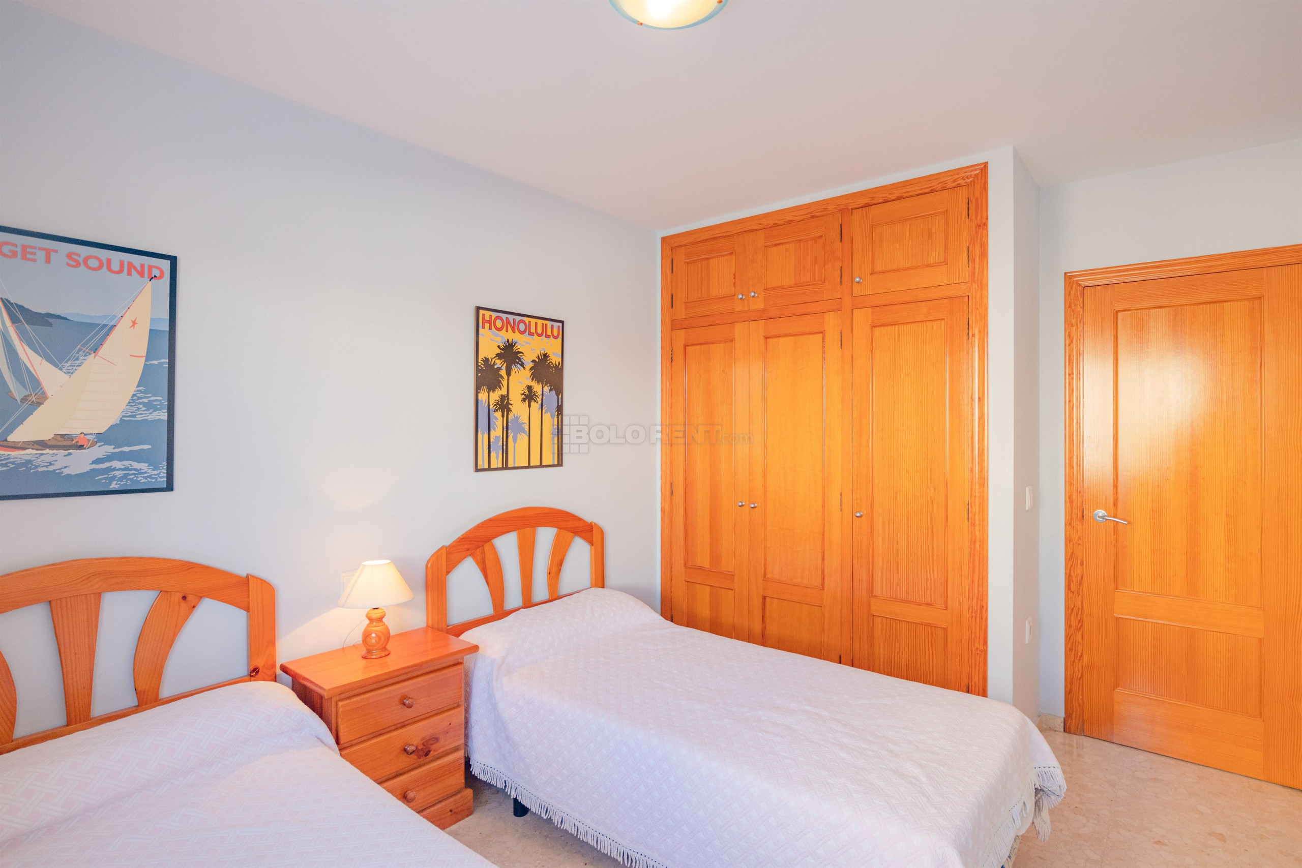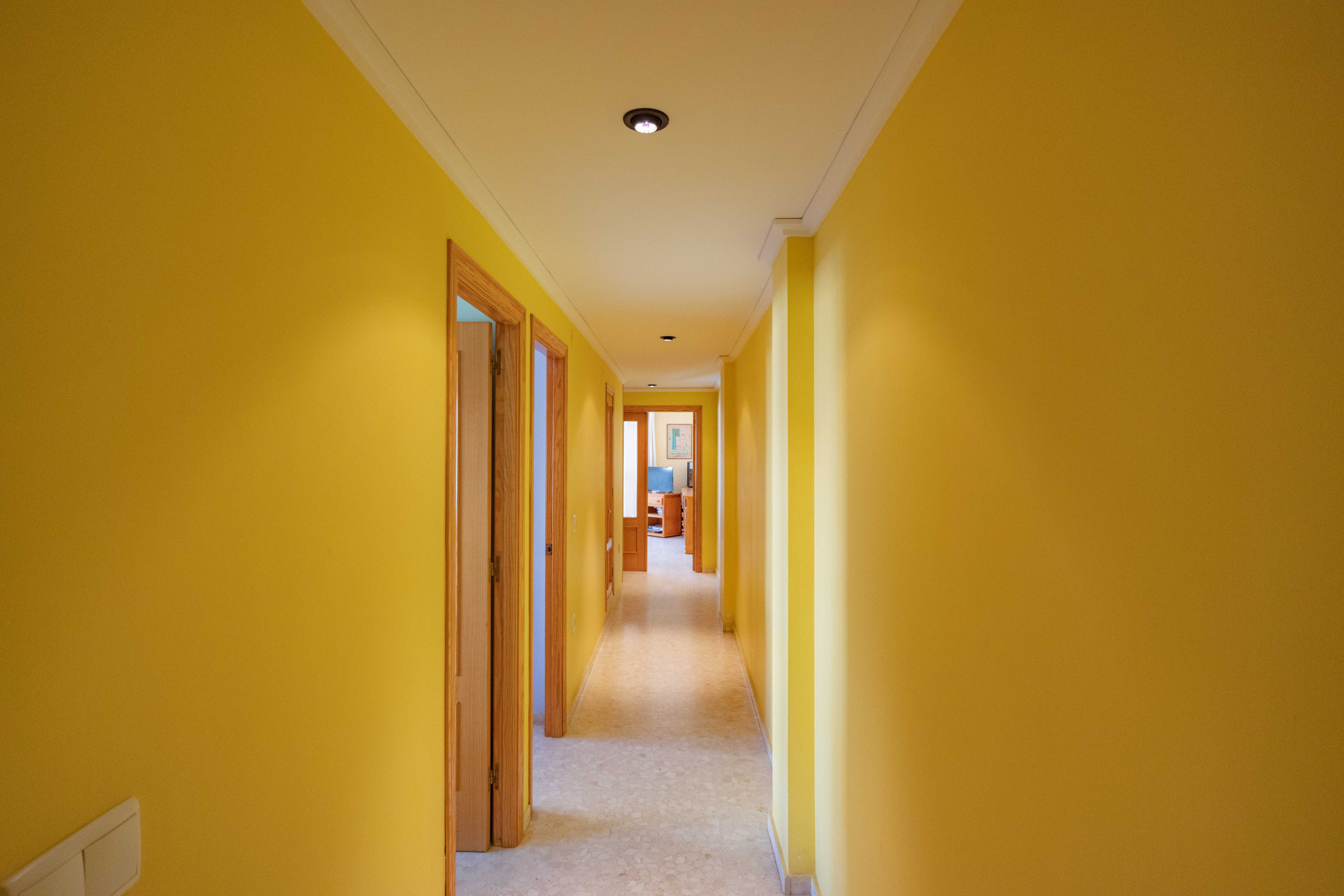 Die Wohnung verfügt über drei Schlafzimmer: zwei mit Einzelbetten und eines mit einem Doppelbett, alle ausgestattet mit eingebauten Schränken zu Ihrer Bequemlichkeit. Es gibt ein Badezimmer, eine separate Küche, eine Waschküche und eine große Terrasse, die die Wohnung umgibt und einen idealen Raum zum Entspannen im Freien bietet. Die Klimaanlage in einem der Schlafzimmer sorgt für eine angenehme Kühle während des Sommers in Valencia, während die WLAN-Verbindung Sie während Ihres Aufenthalts verbunden hält.
