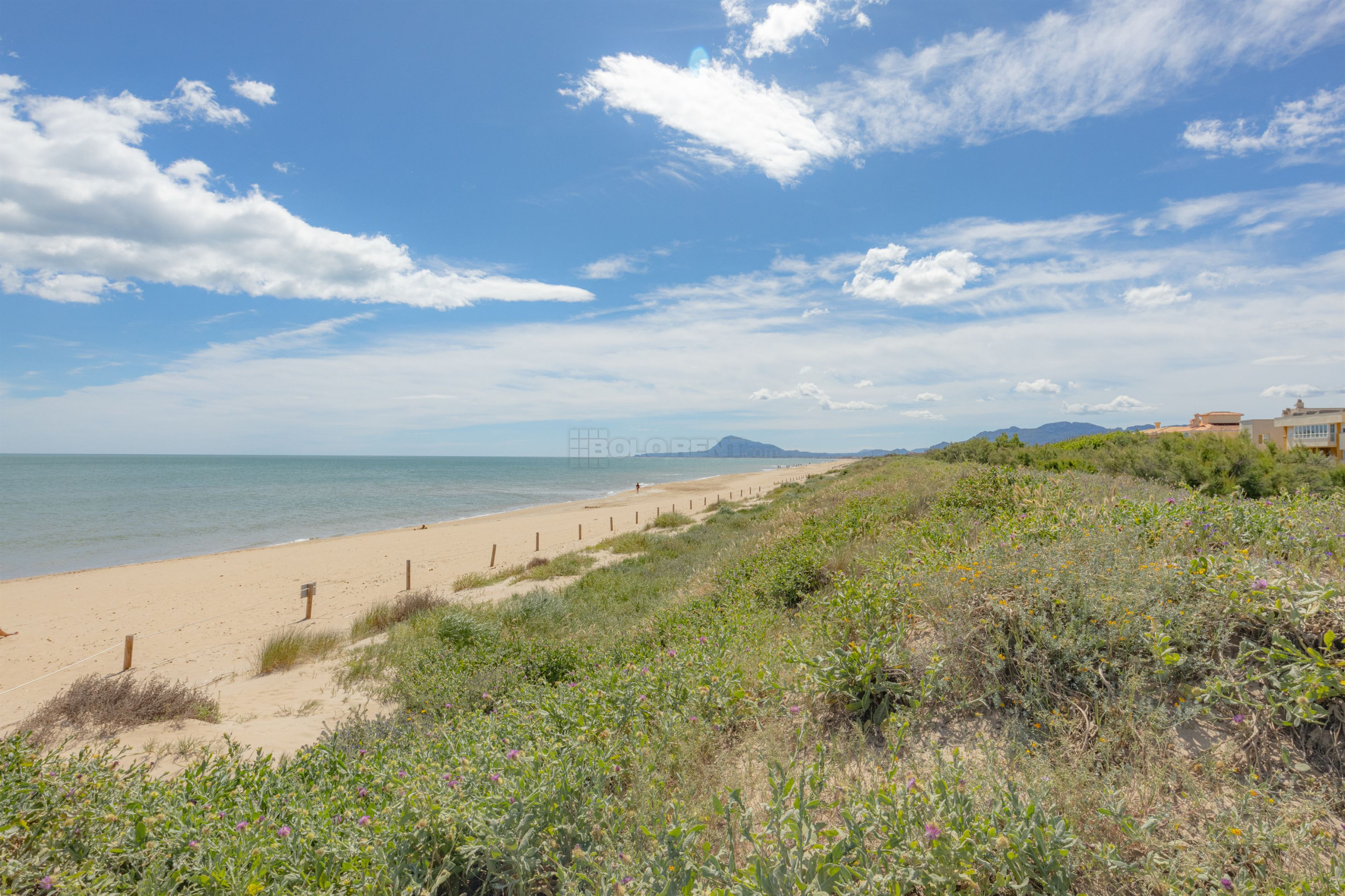Nur wenige Gehminuten von der Wohnung entfernt liegt der Strand von Aigua Blanca, perfekt für alle, die Dünen und ruhige Strände lieben. Mit seinem feinen, goldenen Sand und der mehrfachen Auszeichnung mit der Blauen Flagge garantiert dieser Strand hohe Qualität und gute Erreichbarkeit. Die Promenade hinter der natürlichen Düne und die vielfältigen Serviceangebote, die auch in der Hochsaison ohne Überfüllung auskommen, machen ihn zum idealen Ort für Familien und Wassersportbegeisterte. Entlang des Strandes finden Sie Kioske, Strandbars und vieles mehr.
