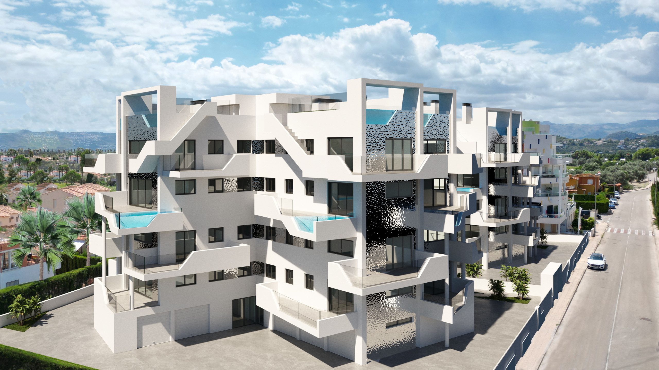 Private Pools: Several apartments feature a private pool on their terrace, allowing you to enjoy luxury from the comfort of your home. And enjoy a refreshing dip in the communal swimming pool.