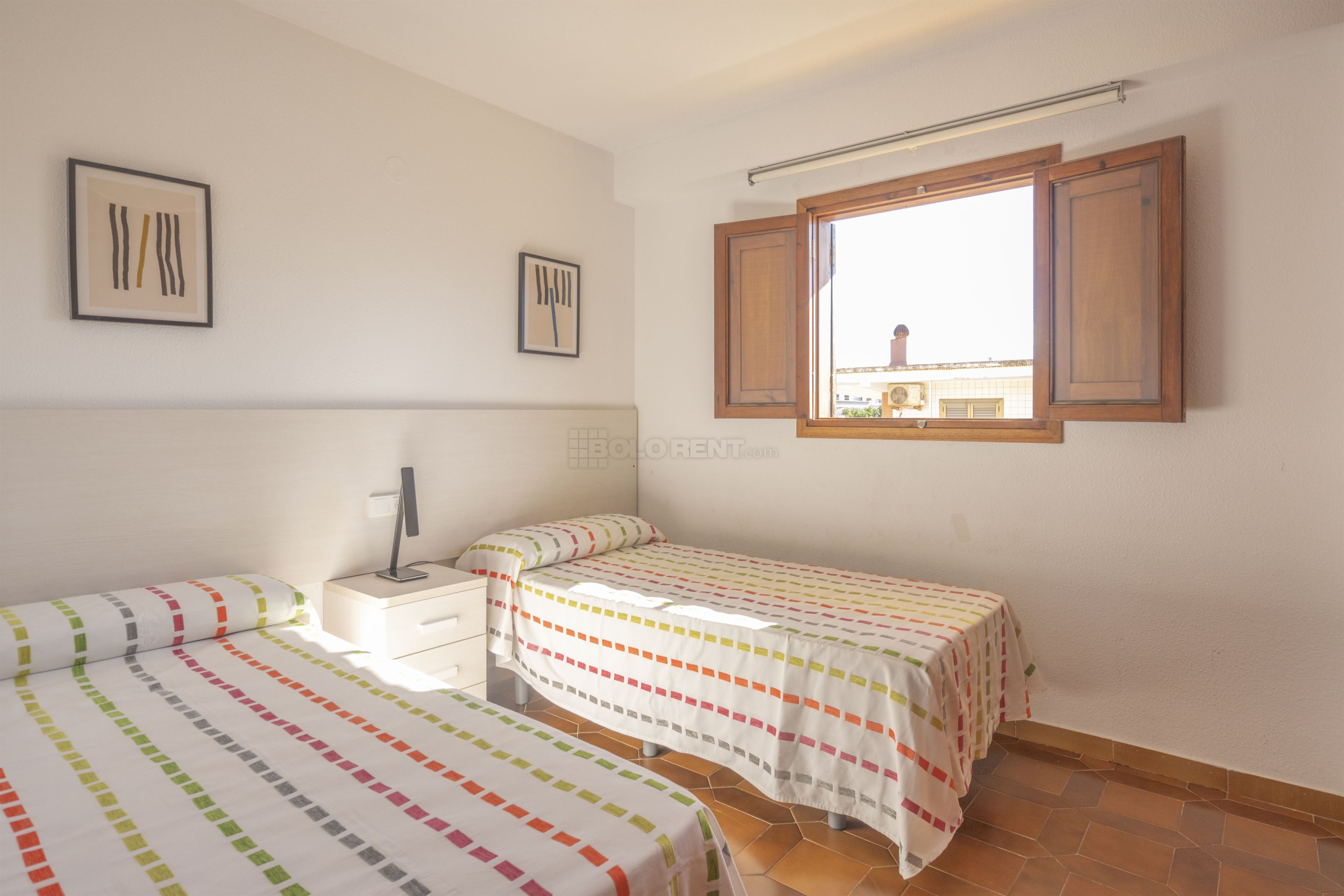 L'appartement dispose de trois chambres : deux avec des lits individuels et une avec un lit de matrimonial, toutes équipées de placards intégrés pour votre commodité. Il comprend une salle de bain, une cuisine indépendante, une buanderie et une terrasse spacieuse qui entoure l'appartement, offrant un espace idéal pour se détendre en plein air. La climatisation dans l'une des chambres assure un environnement frais et confortable pendant l'été à Valence, tandis que la connexion Wi-Fi vous maintient connecté pendant votre séjour.