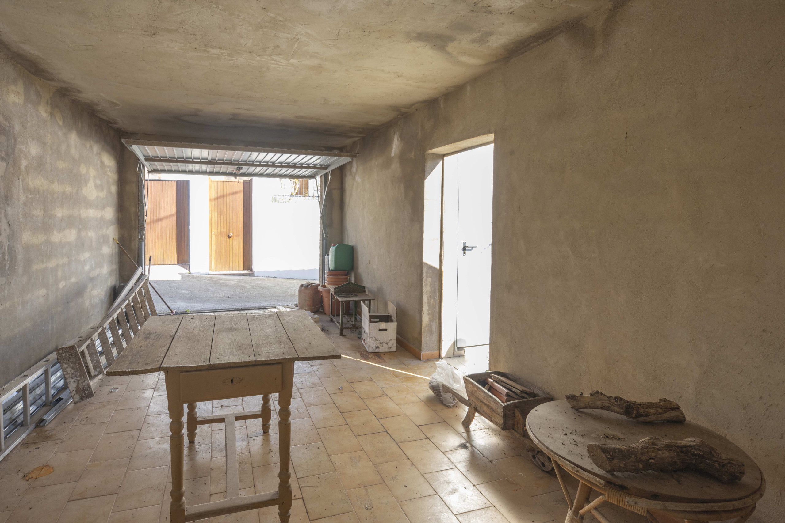 La propriété comprend une petite maison avec cheminée, balcon, débarras et garage, offrant une base parfaite pour aménager un espace sur mesure. De plus, le terrain dispose de son propre puits, garantissant autonomie et valeur ajoutée.