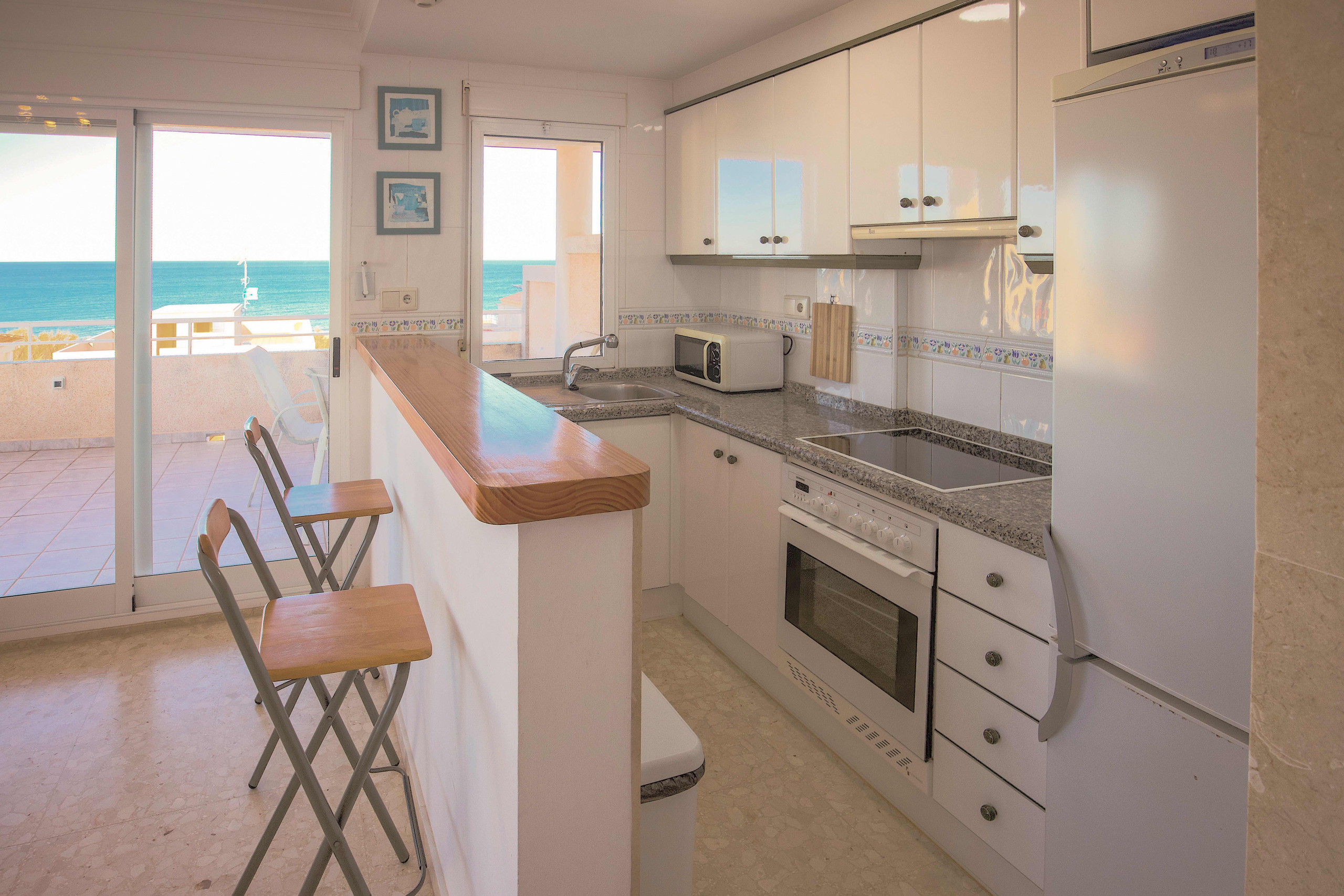 L'appartamento a Oliva ha 2 camera(e) da letto e capacità per 4 persone. Alloggio di 75 m² romantico e molto luminoso, con vista al mare e alla montagna. Si trova a 0 m metro, 50 m dalla spiaggia di sabbia "Playa de Aigua Blanca", 200 m "Parque zona", 300 m "Restaurantes zona", 300 m "Cafeterías zona", 1 km "Consultorio de salud Playa de Oliva", 3 km della città "Oliva", 4 km dalla stazione degli autobus "Oliva ciudad", 6 km dal campo di Golf "Club de Golf Severiano Ballesteros", 6 km "Ambulatorio Oliva", 10 km "Marjal pego Oliva", 15 km dalla stazione dei treni "Renfe Gandía", 15 km dal supermercato "Centro comercial La Vital Gandía", 18 km dal supermercato "Centro comercial Ondara", 30 km dalla spiaggia rocciosa "Les rotes (Dènia)", 40 km dal parco acquatico "Aquopolis (Cullera)", 95 km dall'aeroporto "Aeropuerto de Valencia", 100 km dal parco giochi "Terra Mítica (Benidorm)", 115 km dall'aeroporto "Aeropuerto de Alicante" e si trova in una zona tranquilla zone e vicino al mare.Ha ascensore, 8 m² della terrazza, lavatrice, ferro da stiro, accesso internet (wifi), piscina in comune, garage in in struttura, 2 ventilatori, 1 Televisore.La cucina americana, a vetroceramica, è attrezzata con frigorifero, microonde, forno, congelatore, stoviglie/posate, utensili da cucina, caffettiera, tostapane e spremi agrumi.